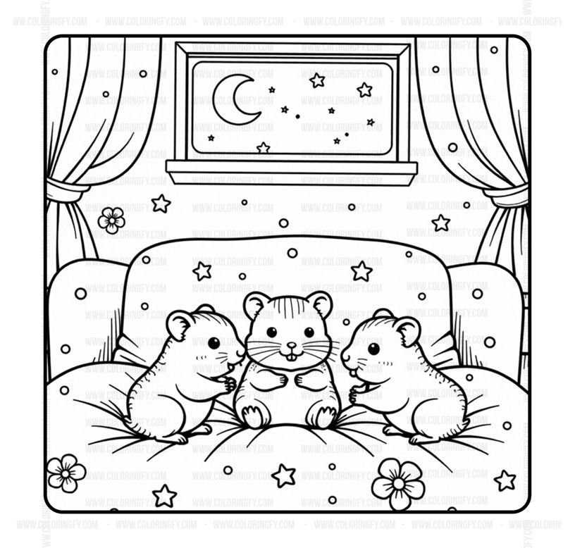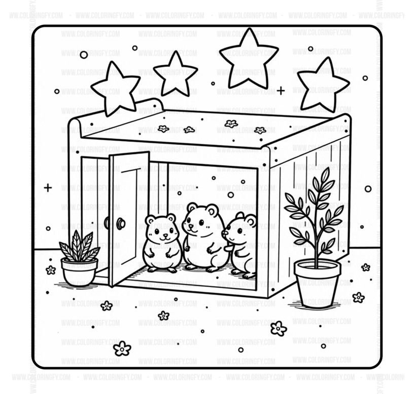 Welcome to a tiny, twinkling world where the sunflowers grow tall and the fluffiest residents are waiting to share their secrets with you. This Hamster Family Cozy Coloring Book Vol. 1 is a meticulously crafted digital treasure designed to whisk you away to a sanctuary of domestic bliss and whisker-filled wonder. Within this premium PDF, you will explore a heartwarming gallery of 50 designs featuring chubby hamster parents, adventurous pups tucked into tea cups, and elaborate burrow scenes that invite hours of peaceful exploration. Every cozy coloring page is presented with high-definition, ultra-clean black outlines—entirely free from messy sketch lines or distracting pencil textures—ensuring your markers and pencils glide with professional-grade precision. Whether you are a fan of small pets or simply seeking a pocket-sized escape from the noise of 2026, this instant download delivers a high-quality creative retreat ready for your unique artistic touch.